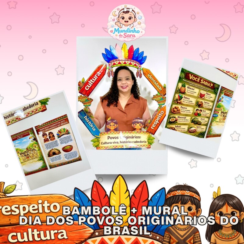 Um recurso encantador para valorizar o Dia dos Povos Originários do Brasil de forma educativa e significativa. Com elementos visuais marcantes, palavras-chave como respeito, cultura, história e identidade, este bambolê e mura ajuda a compor um cenário bonito, pedagógico e cheio de representatividade.