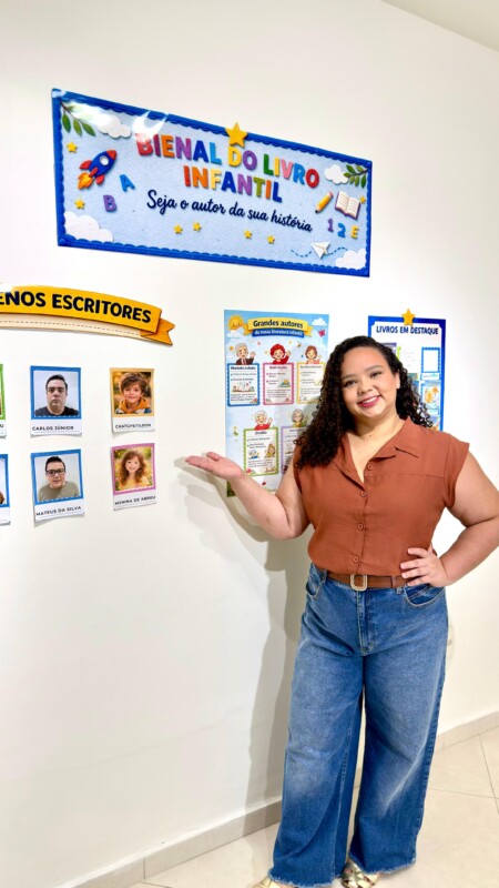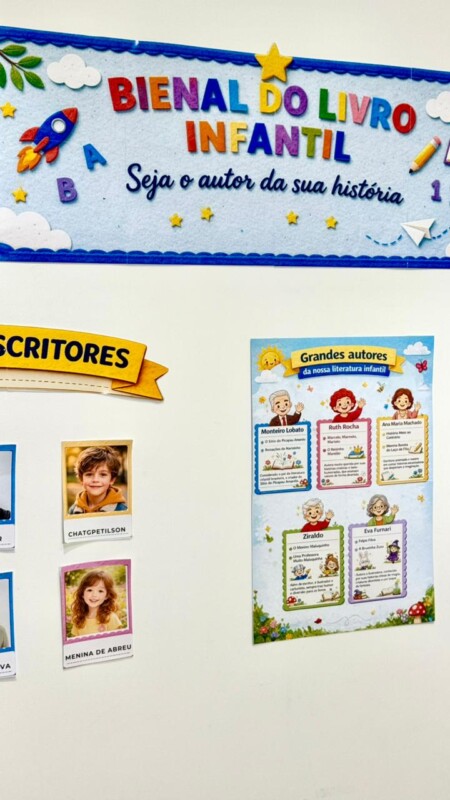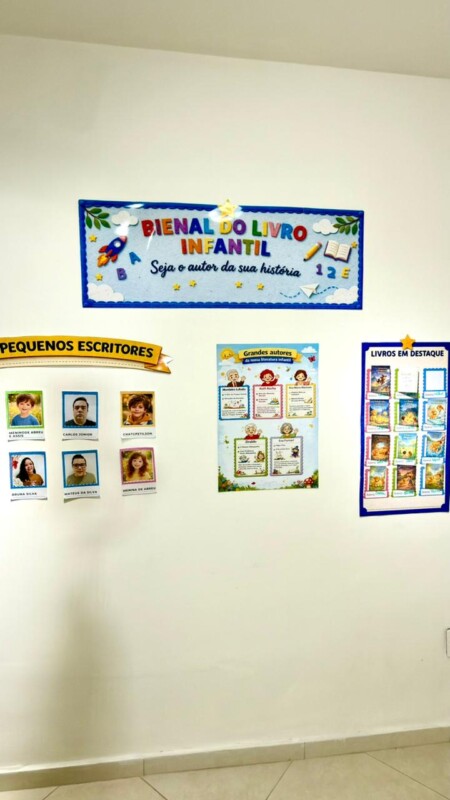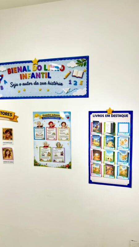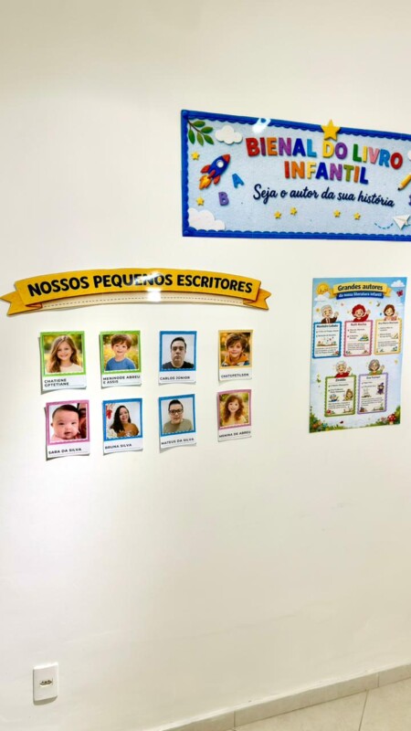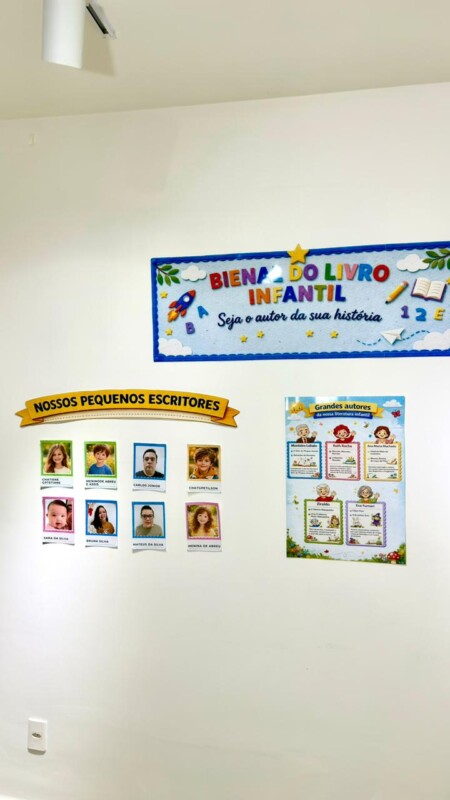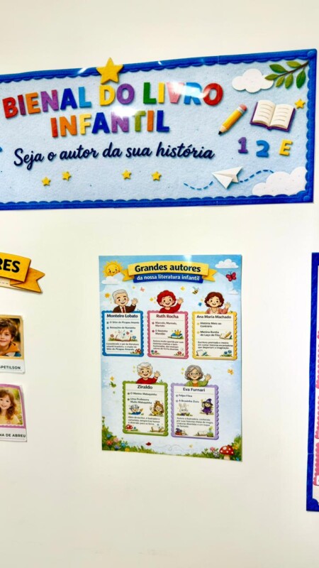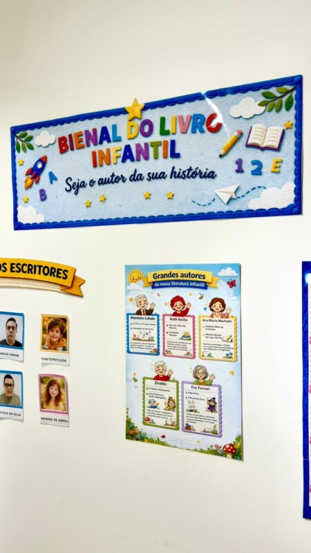 A Bienal do Livro Infantil foi pensada para criar um cenário especial de exposição e participação dos alunos. No espaço “Nossos Pequenos Escritores”, é possível colocar as fotos das crianças para apresentar as mini histórias produzidas por elas. O painel central homenageia grandes autores da literatura infantil, enquanto o painel “Livros em Destaque” foi desenvolvido para expor os mini livrinhos criados pela turminha, deixando o ambiente ainda mais rico, lúdico e inspirador.