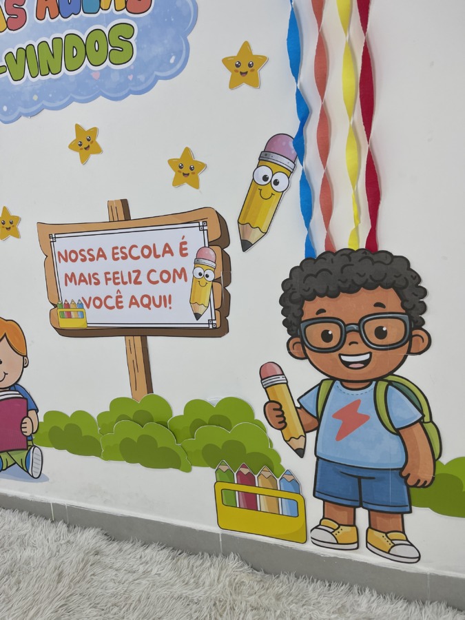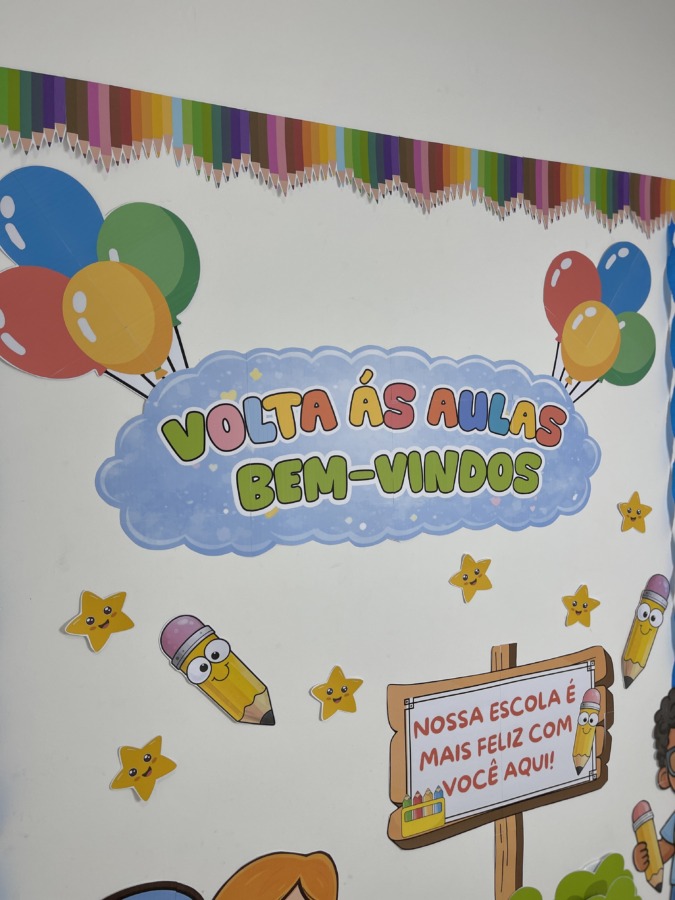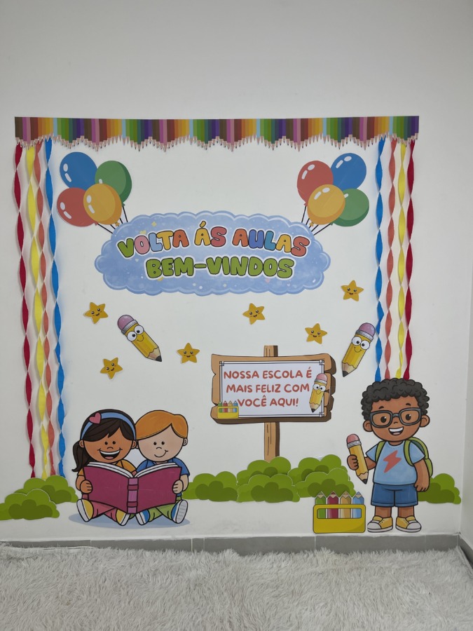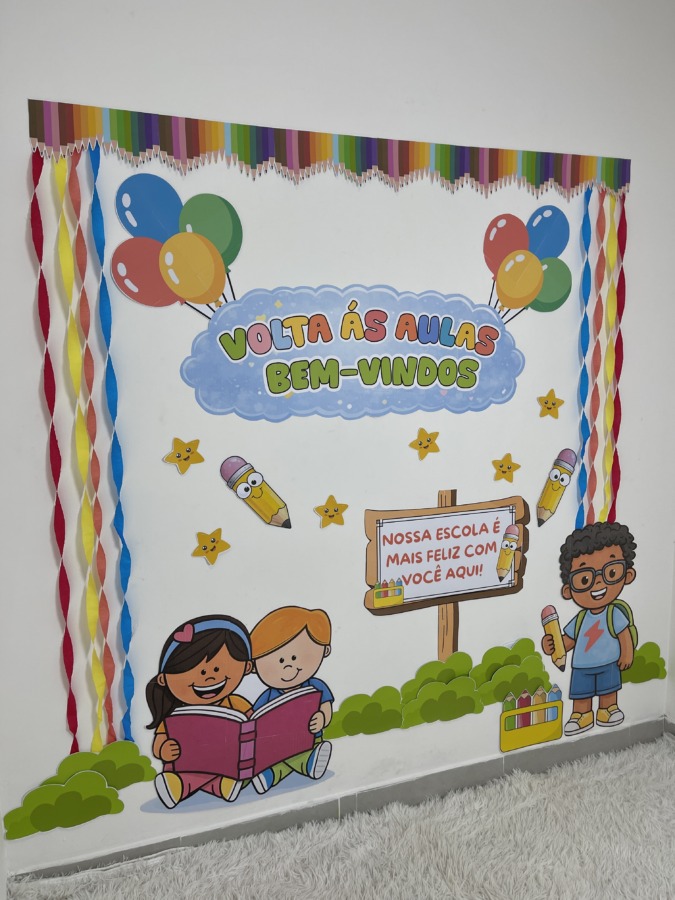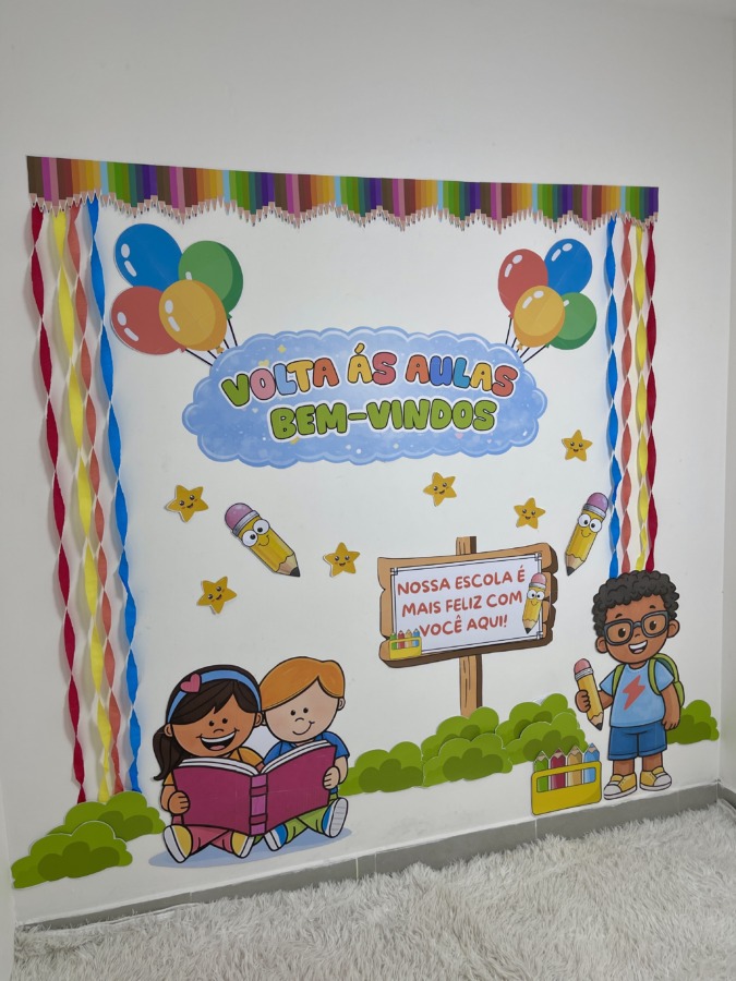 Comece o ano letivo com um mural lindo e acolhedor! O Painel Volta às Aulas – Bem-Vindos foi criado para transformar o primeiro contato das crianças com a escola em um momento especial, com visual colorido, lúdico e infantil.