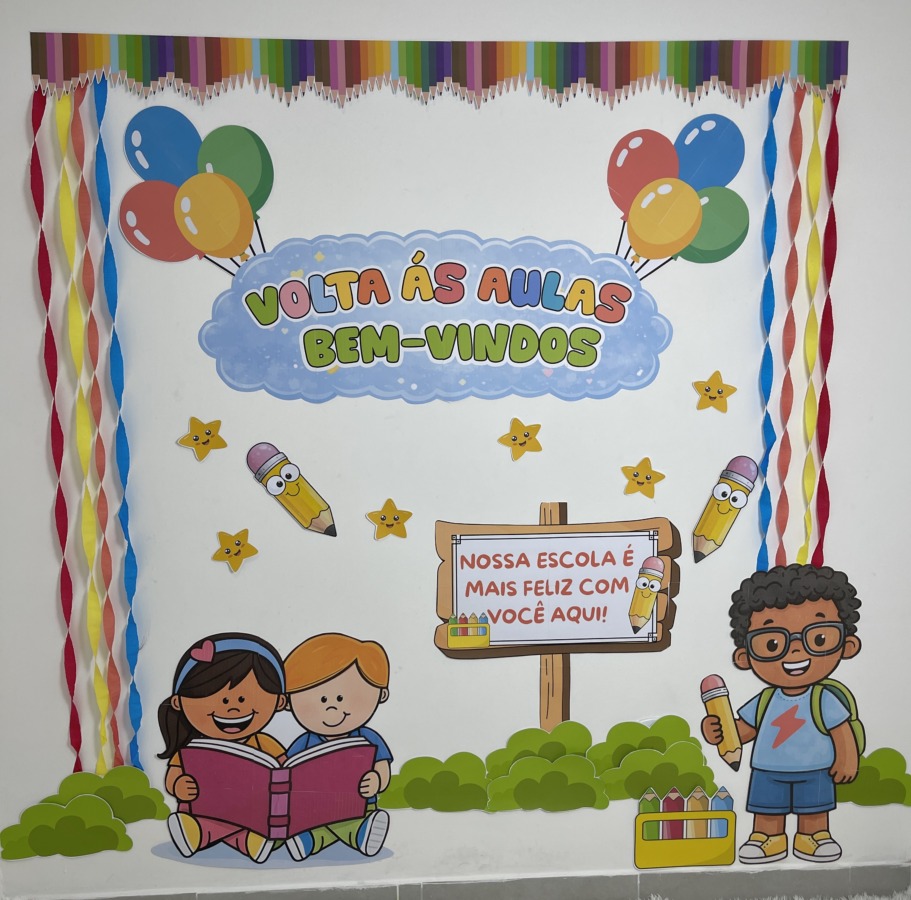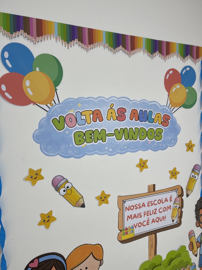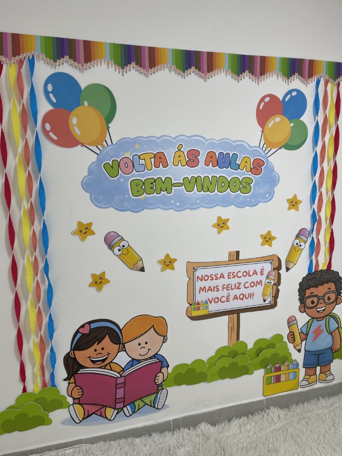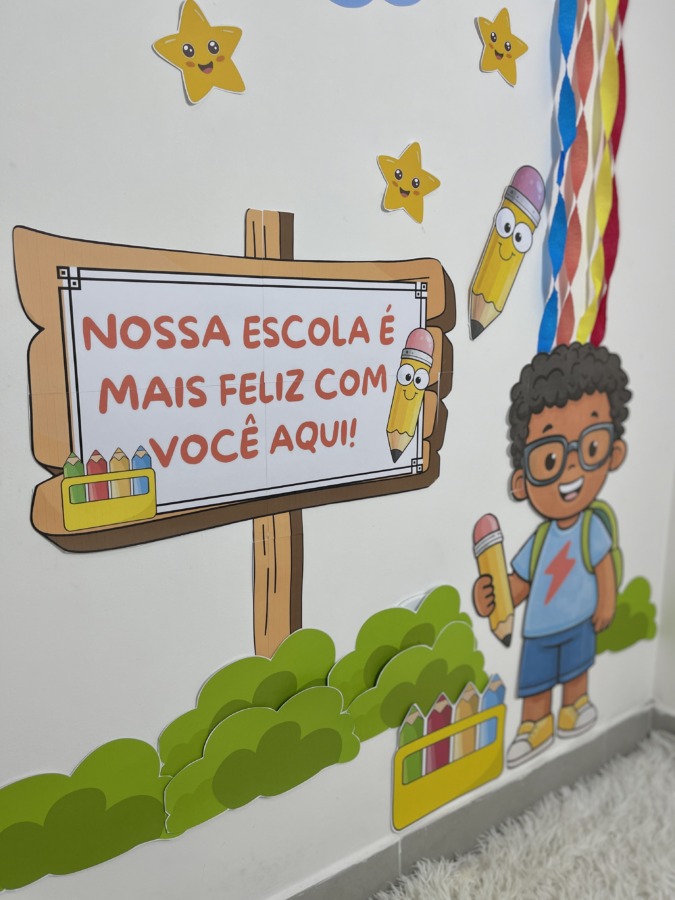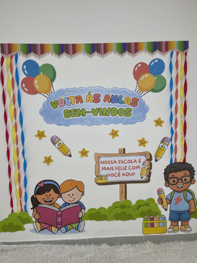 Comece o ano letivo com um mural lindo e acolhedor! O Painel Volta às Aulas – Bem-Vindos foi criado para transformar o primeiro contato das crianças com a escola em um momento especial, com visual colorido, lúdico e infantil.